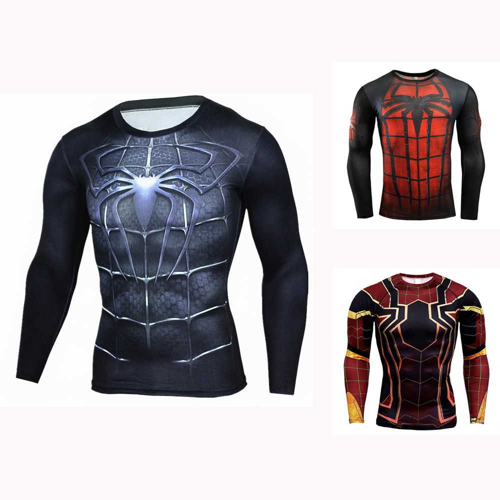 Kaos Olahraga Pria Ketat Lengan Panjang Quick Dry Motif Spiderman 3d Untuk Lari Gym Shopee Indonesia