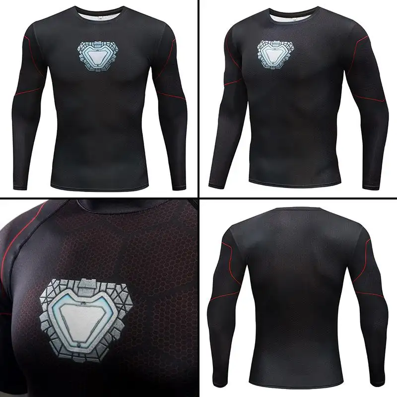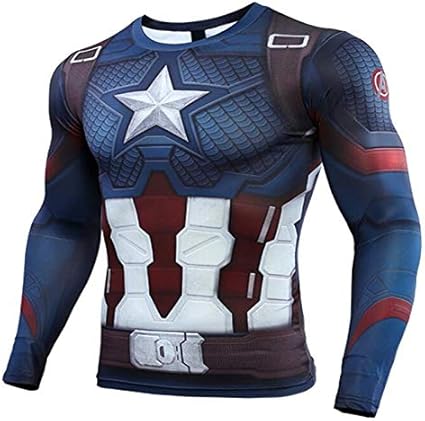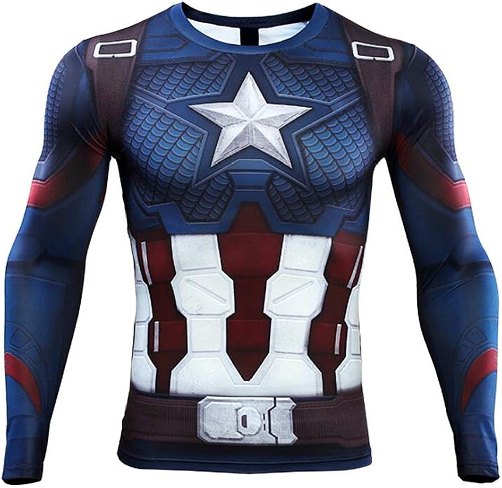 Men S Compression Shirt Super Hero Tops Captain America Long Sleeve Training T Shirt Fitness Athletic Shirts Base Layer Tee