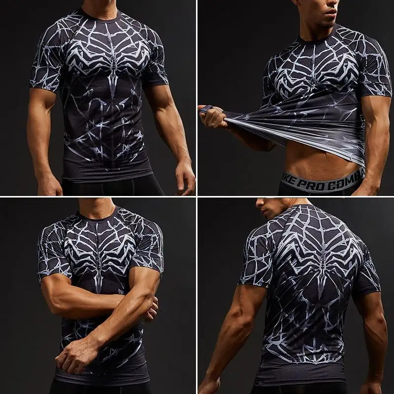 Mens Kaus Kompresi Spider Man Cepat Kering Cetak T Shirt Kebugaran Celana Olahraga Olahraga Berlari Atletis Atasan