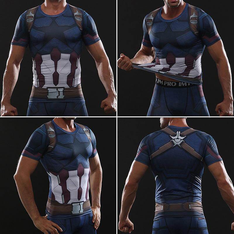 Atasan Atletik Lari Olahraga Lelaki Kaus Ketat Latihan Fitness Bercetak Captain America Kompresi Cepat Kering Untuk Pria Lazada Indonesia