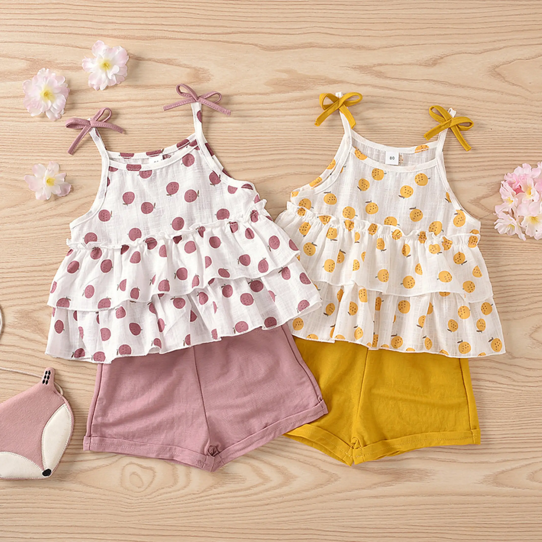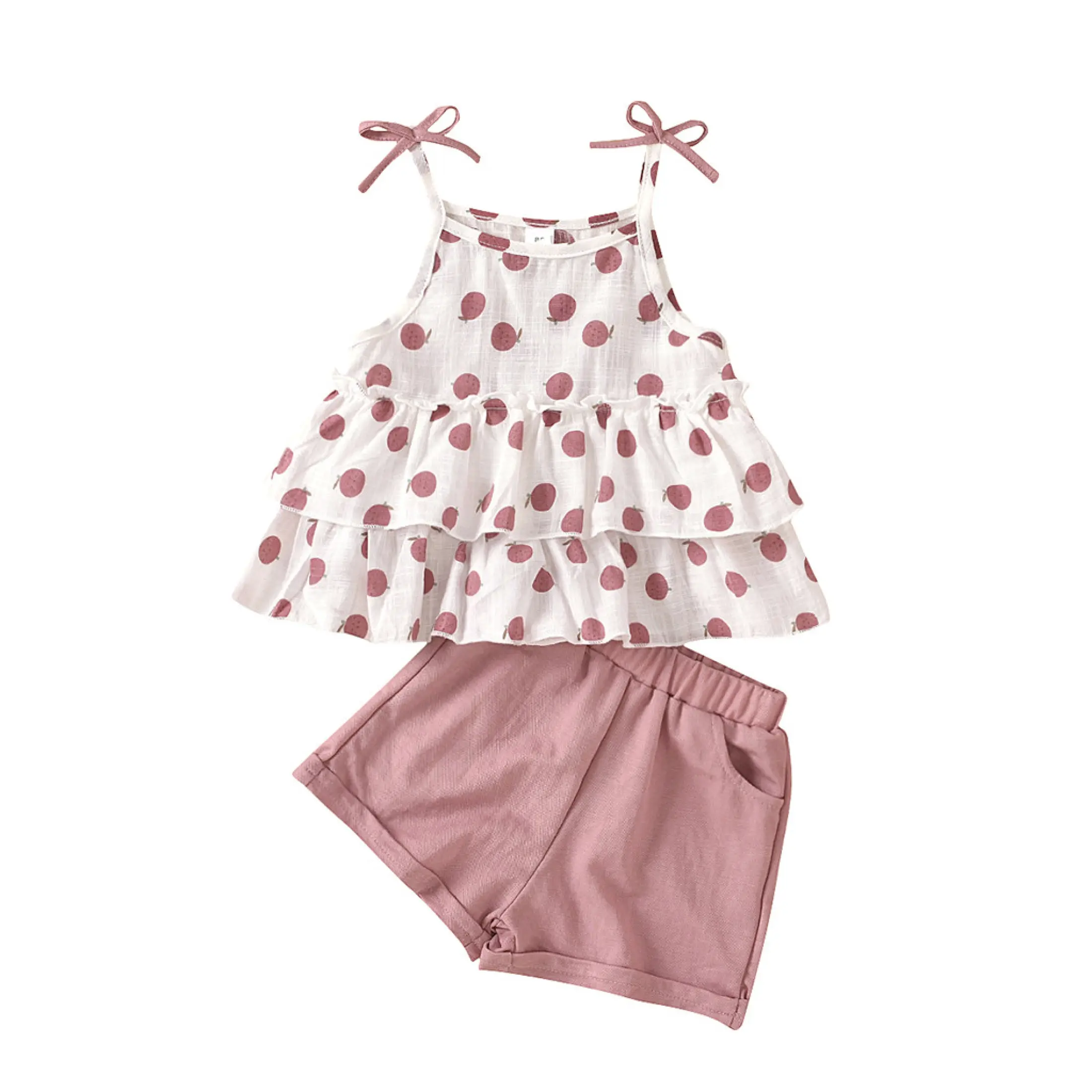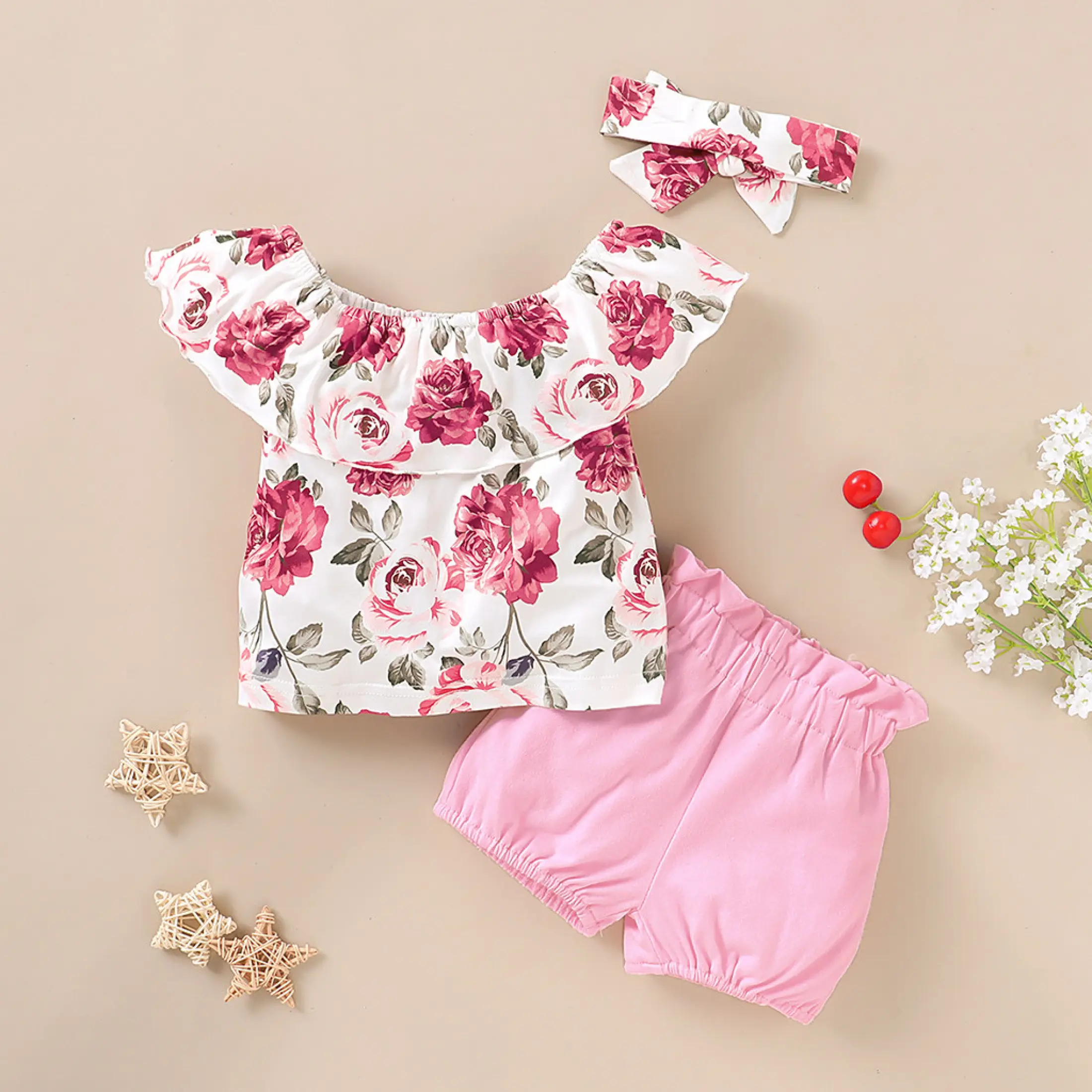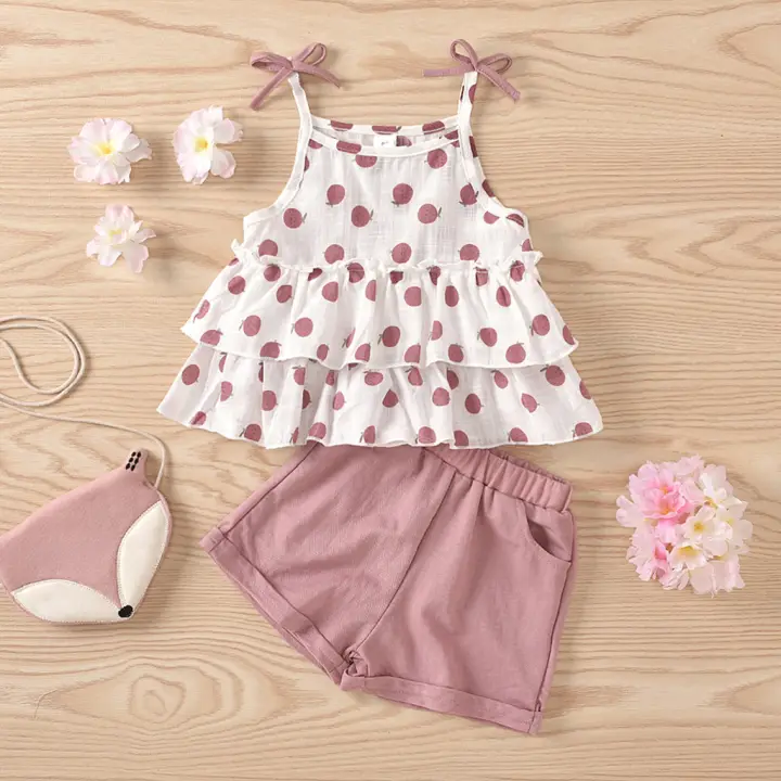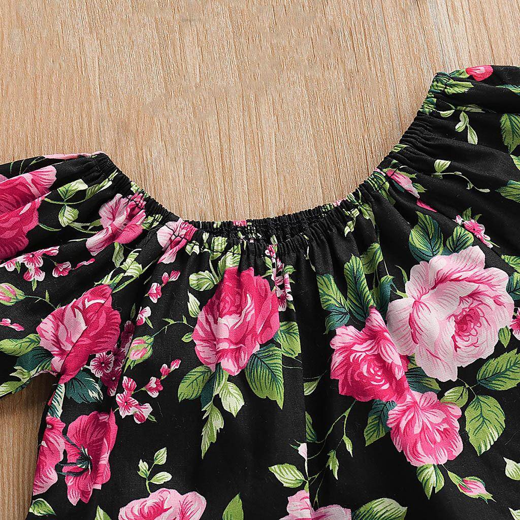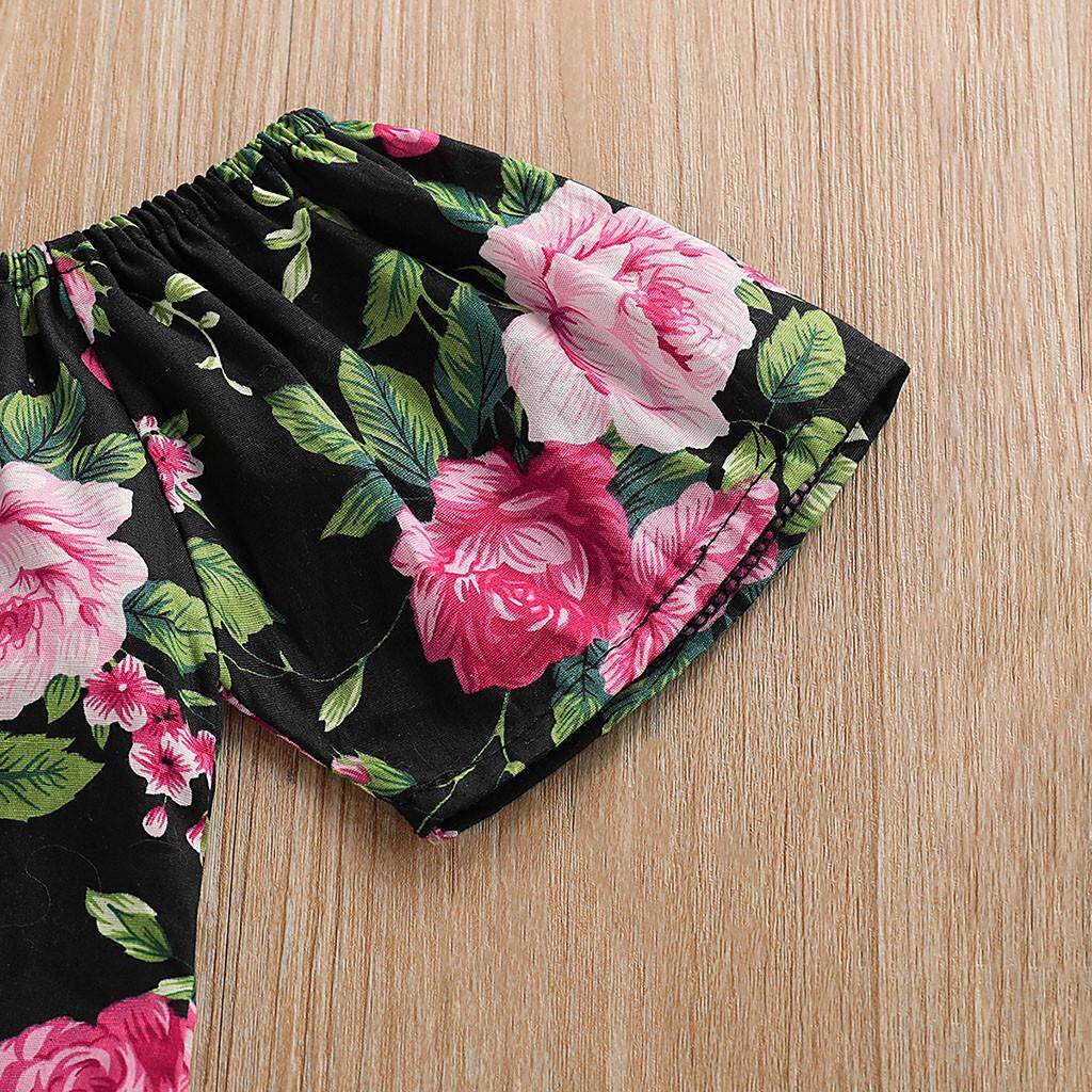 Lazadacarell Balita Perempuan Bahu Terbuka Bunga Cetak Atasan Berkerut Padat Celana Pendek