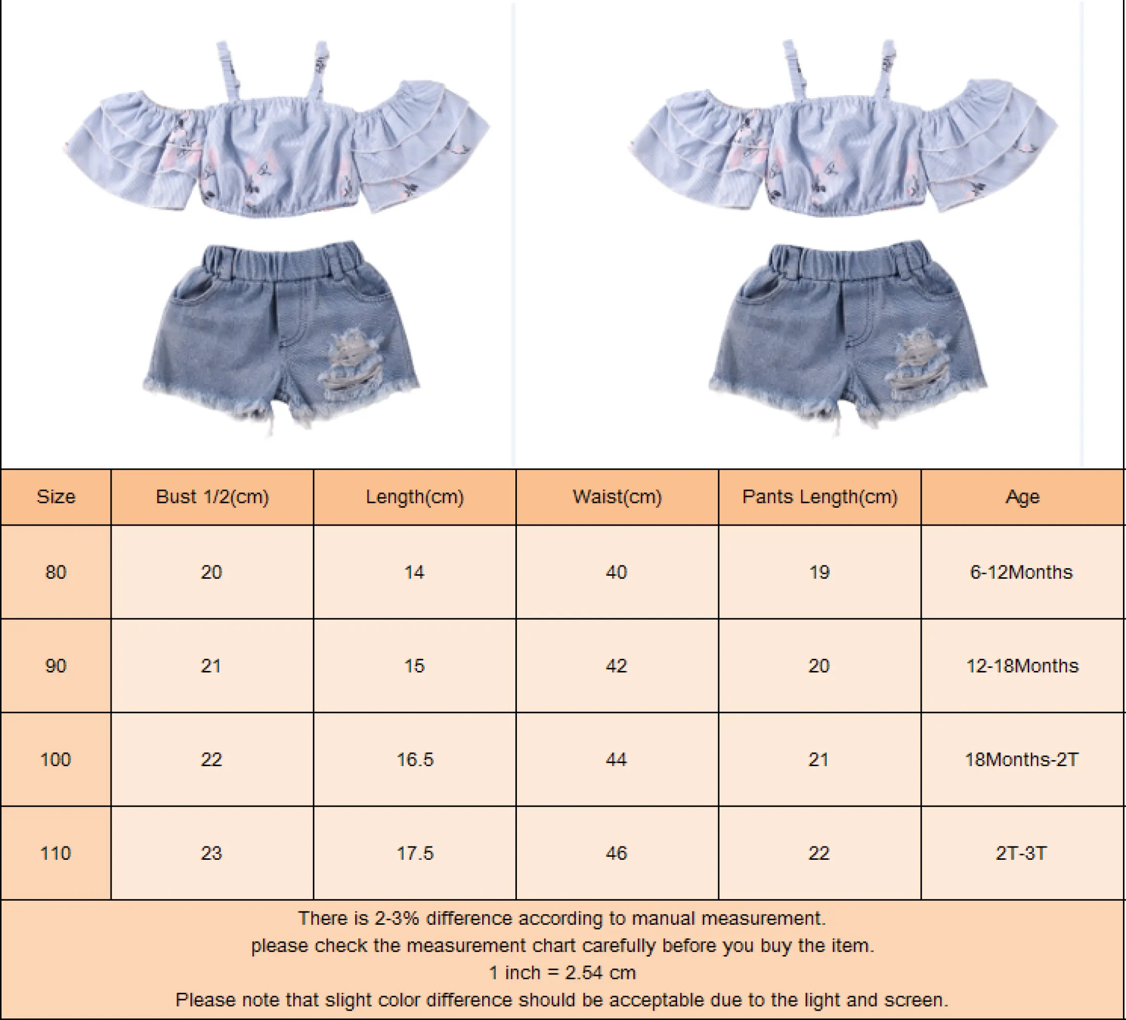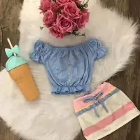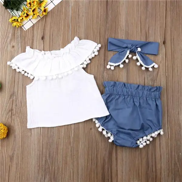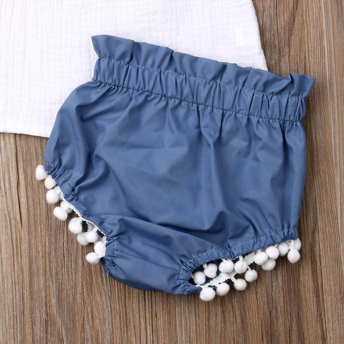 Amazinglyset Baju Balita Bayi Perempuan Baju Atasan Celana Pendek Denims Bahu Terbuka Kerut Bunga Musim Panas 6 Bln 3 Thn Lazada Indonesia