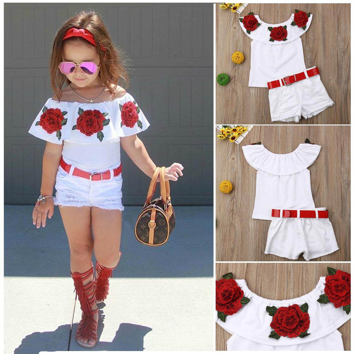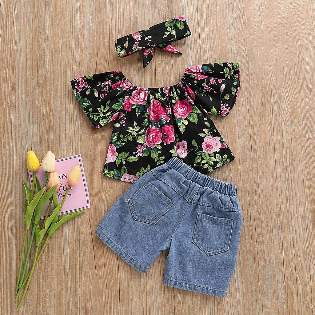 Bayi Balita Perempuan Bahu Terbuka Bunga Gambar Atasan Lubang Jeans Denim Celana Pendek Lazada Indonesia