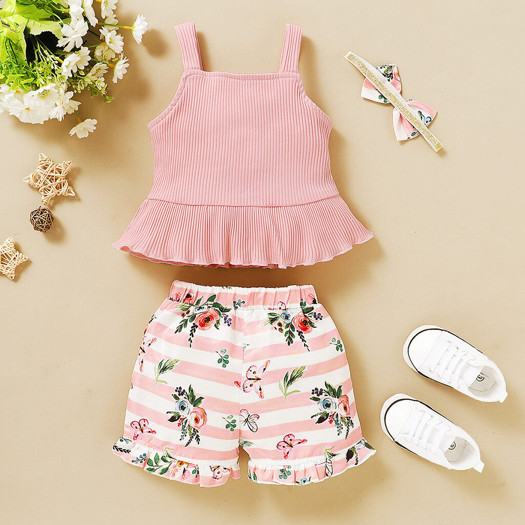 Good Quality Bayi Balita Perempuan Bahu Terlihat Cetakan Bunga Berkerut Atasan Celana Pendek Bando Pakaian Lazada Indonesia