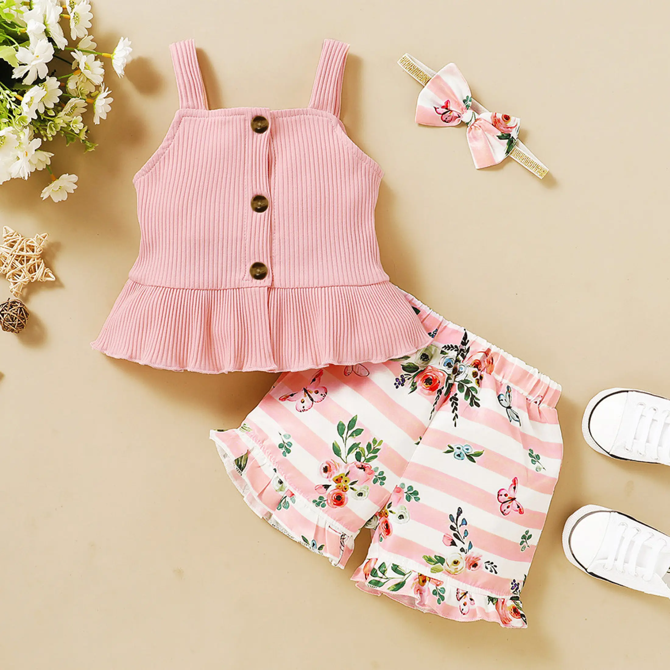 Celana Bahu Terbuka Bayi Perempuan Bawahan Celana Pendek Atasan Bahu Terbuka Motif Bunga Umur 0 2 Tahun Lazada Indonesia