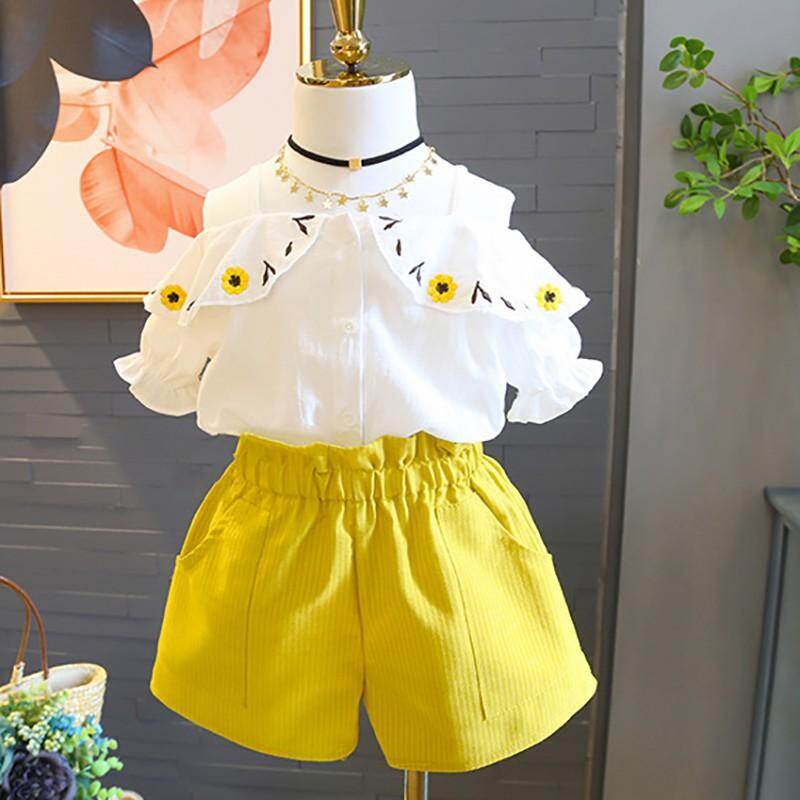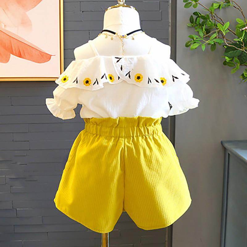 Set Pakaian Bayi Perempuan Setelan Baju Anak Perempuan Atasan Cetak Bunga Bordir Celana Pendek Desain Bahu Terbuka Tanpa Lengan Musim Panas Lazada Indonesia
