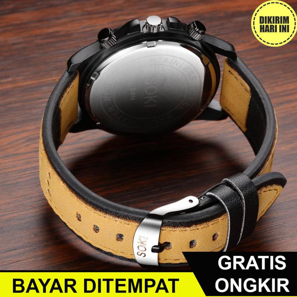 Bayar Ditempat O390 Jam Tangan Pria Soki S014 Strap Kulit Arloji Analog Sport Outdoor Fashion Anti Shopee Indonesia