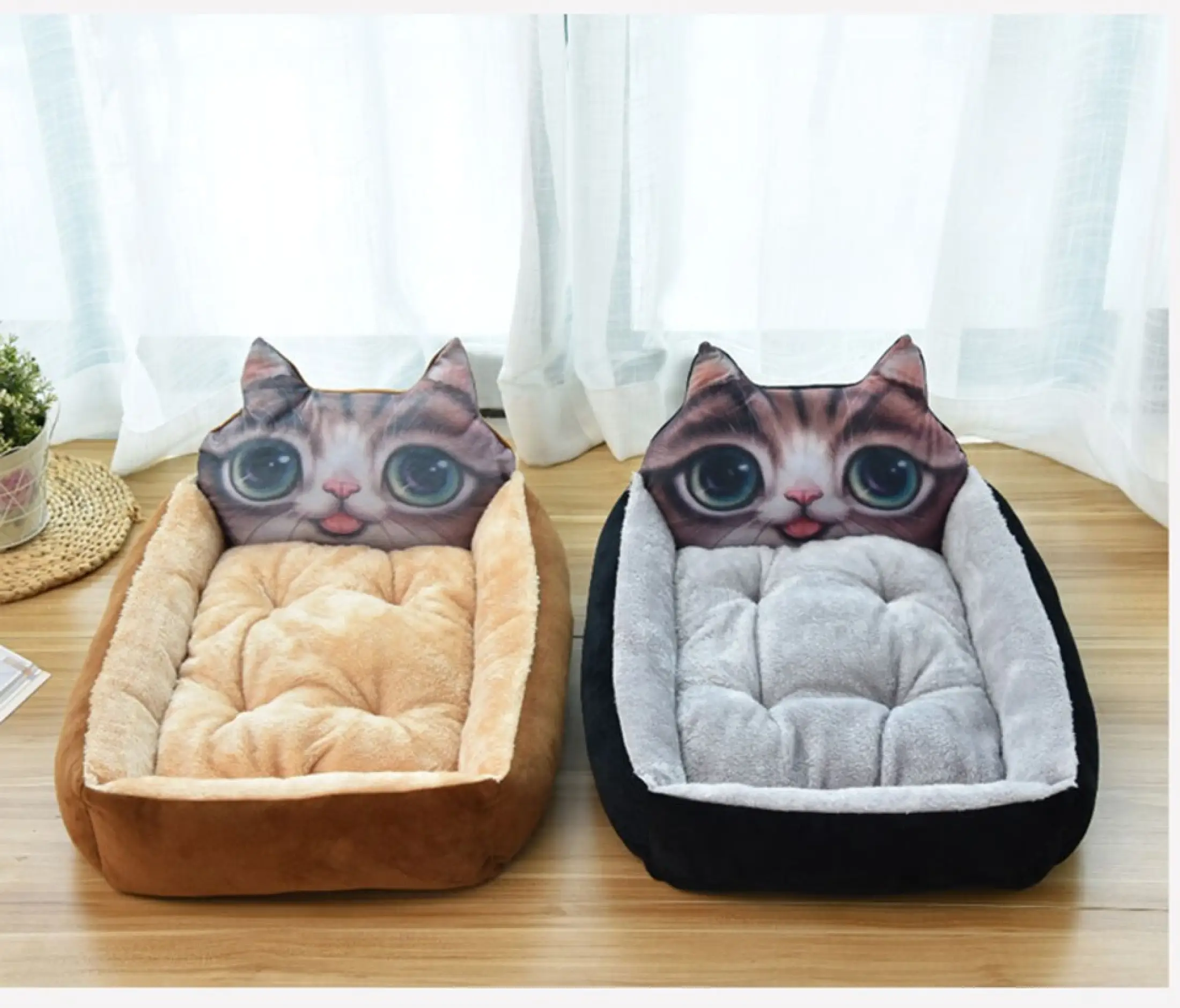 Lucu Lembut Tempat Tidur Hewan Peliharaan Untuk Kucing Anjing Yang Dapat Dilepas Kucing Bed House Kennel Musim Dingin Hangat Sarang Lembut Tidur Keranjang Kucing Rumah Cama Untuk Gato Cat Tempat Tidur Tikar