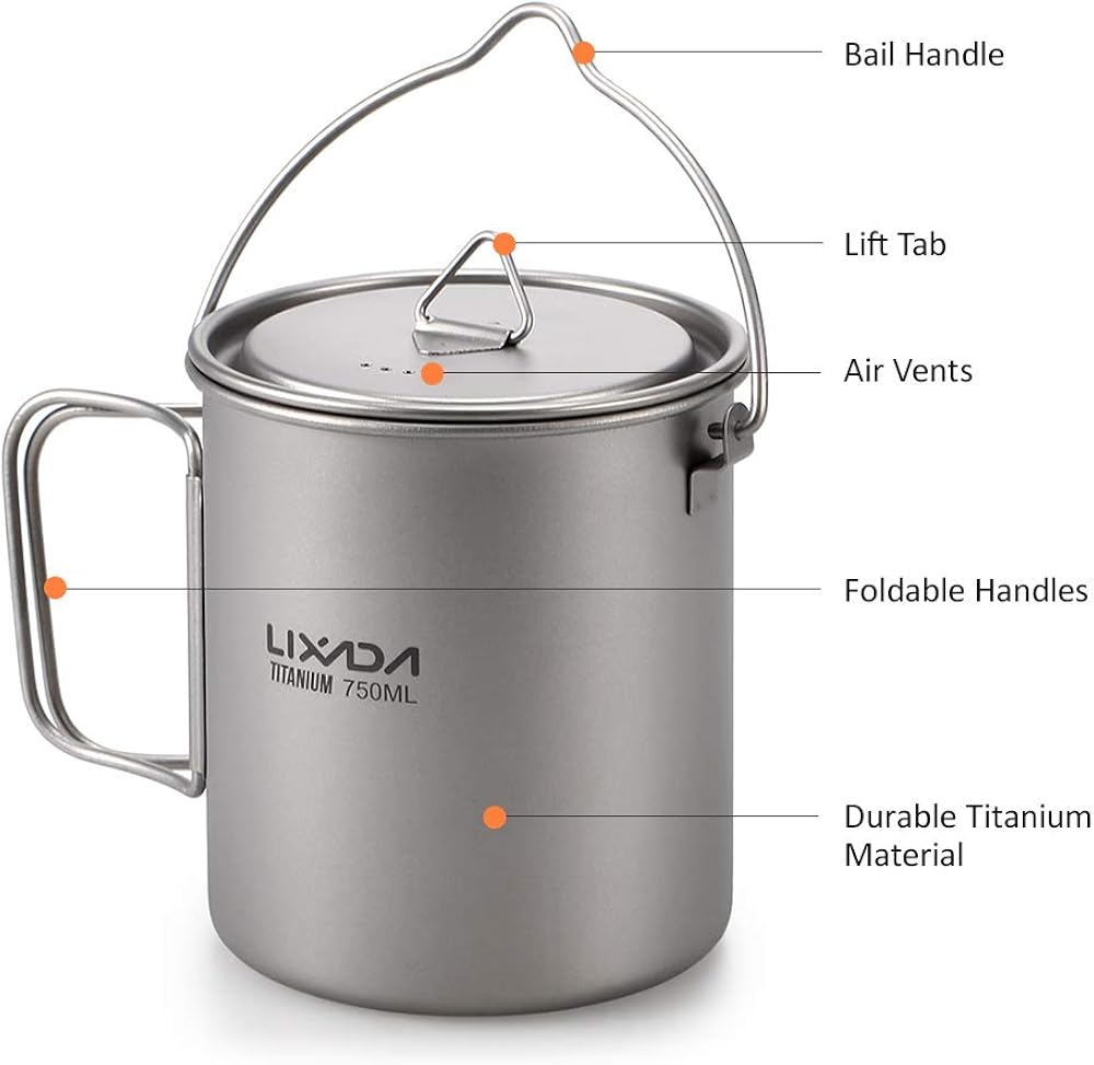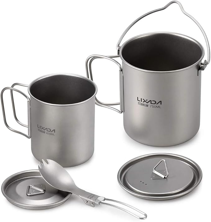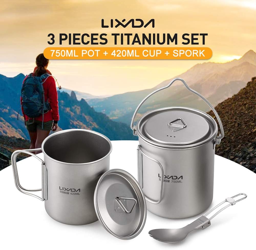 Lixada Camping Cookware Set 3pcs Lightweight Titanium Set 750ml Pot 420ml Water Cup Mug With Lid Collapsible Handle Folding Spork For Outdoor Camping Hiking Backpacking Clothing Amazon Com