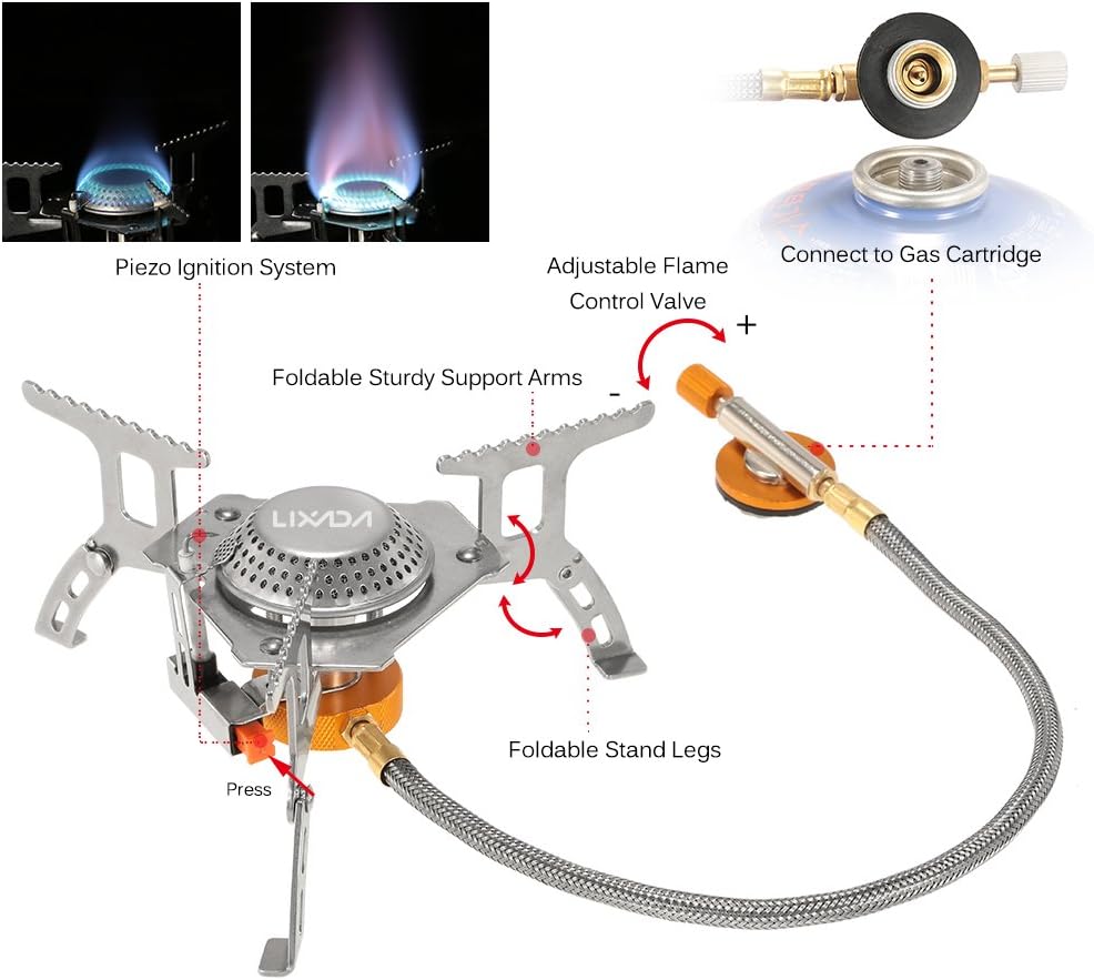 Lixada Outdoor Camping Cooking Big Power Windproof Gas Stove Butane Burner Mini Camping Cookware Portable Foldable Split Furnace 3200w For Picnic Hiking Sports Outdoors Amazon Com