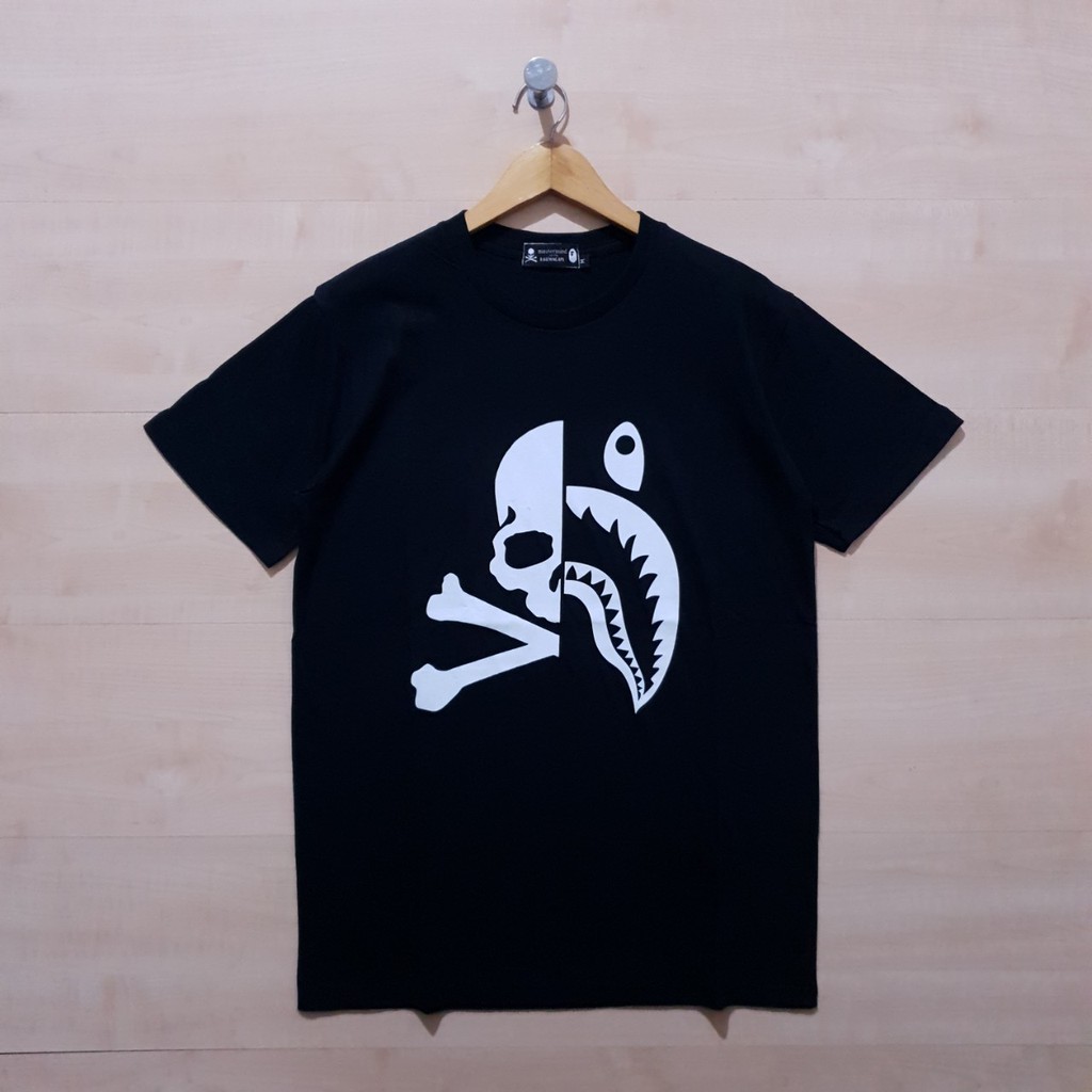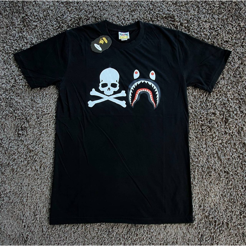 T Shirt Kaos A Bathing Ape Bape X Mastermind Skull Shark Black Authentic Lazada Indonesia